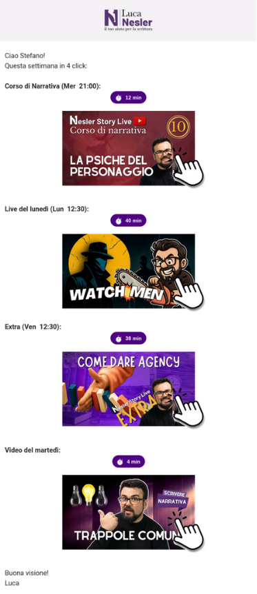 automatic weekly recap, which over 4 weeks increased the average open rate by +3.7% and the average click